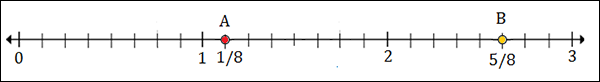 Marks divide each unit into 8 equal parts on number line here.