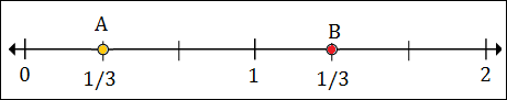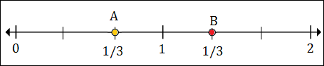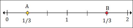 Marks divide each unit into 3 equal parts on number line here.