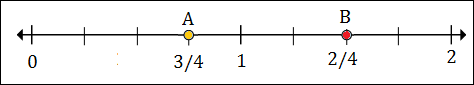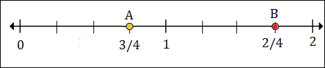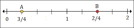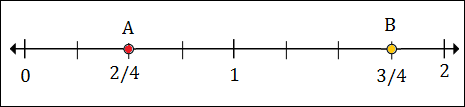 To plot 1/2 or 2/4, we put a point between 0 and 1, 2 marks to the right of 0.