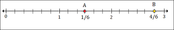 Marks divide each unit into 6 equal parts on number line here.