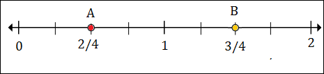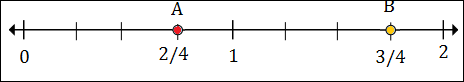 To plot 1$\frac{1}{2}$ or 1$\frac{2}{4}$ we put a point between 1 and 2, 2 marks to the right of 1.