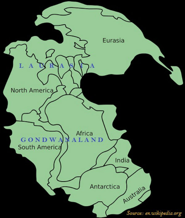 The northern part of the ancient super continent Pangea was named as Angara Land or Laurasia and the southern part was named as Gondwana Land.