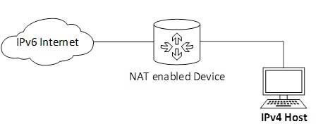 A host with IPv4 address sends a request to an IPv6 enabled server on Internet that does not understand IPv4 address. In this scenario, the NAT-PT device can help them communicate. When the IPv4 host sends a request packet to the IPv6 server, the NAT-PT device/router strips down the IPv4 packet, removes IPv4 header, and adds IPv6 header and passes it through the Internet. When a response from the IPv6 server comes for the IPv4 host, the router does vice versa.