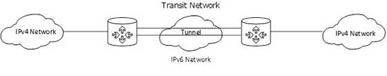 The above diagram depicts how two remote IPv4 networks can communicate via a Tunnel, where the transit network was on IPv6. Vice versa is also possible where the transit network is on IPv6 and the remote sites that intend to communicate are on IPv4.