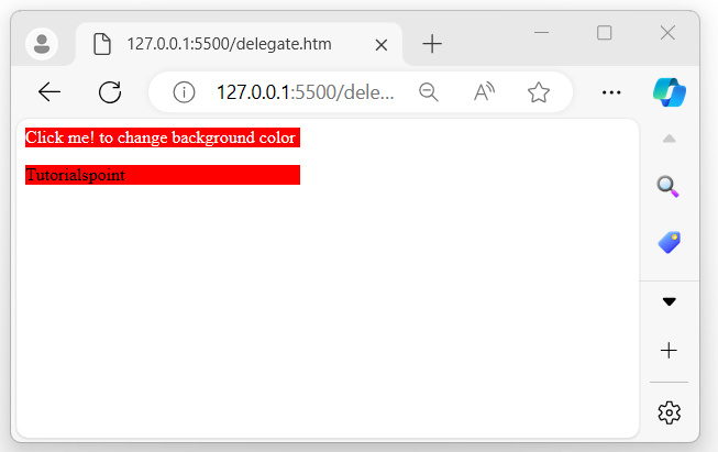 The above program displayed two messages, once the user clicks on the first (parent) message, the background color of both messages (parent and child) will change to red −
