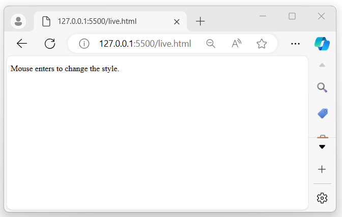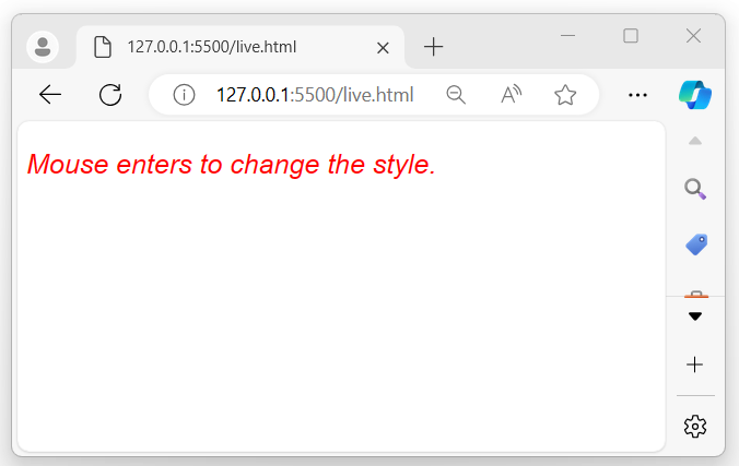 After executing the above program, it displays a message when the mouse pointer enters the selected element, and the style will change accordingly −