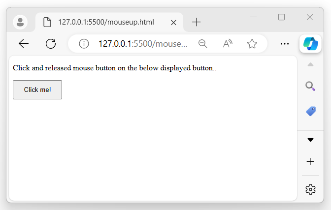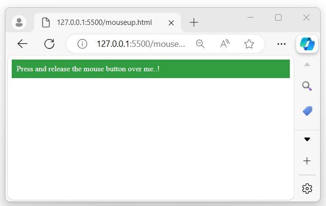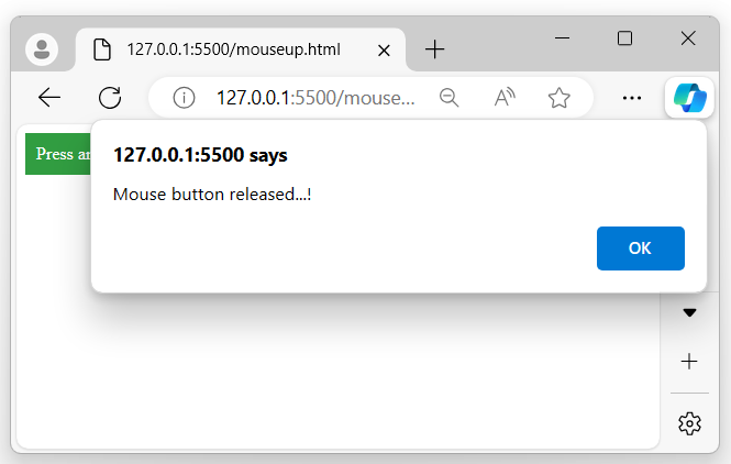 The following program displayed a message when the user presses and releases the mouse button over the selected element, an alert pop-up will appear on the browser screen −