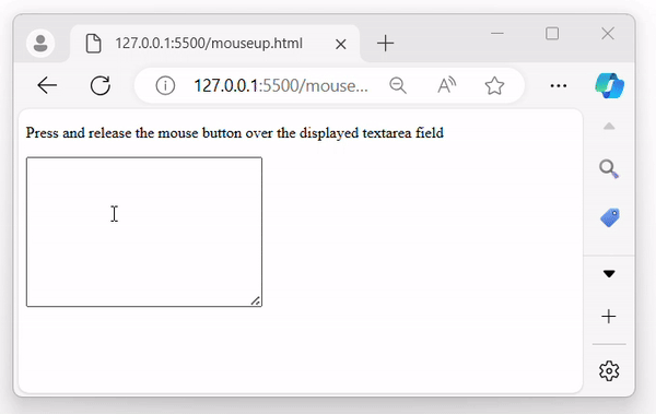 <p>Press and release the mouse button over the displayed textarea field</p>