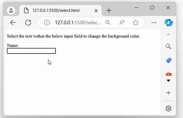 Once the above program is executed, it will display an input field. When text within the input is selected, the background changes to green −