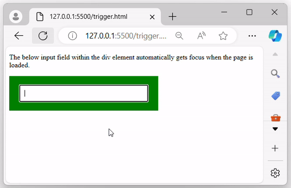 <p>The below input field within the div element automatically gets focus when the page is loaded.</p>