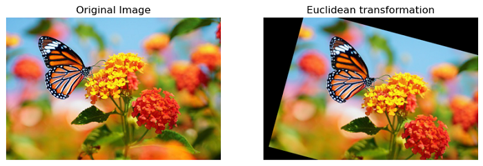 Pythons Scikit-image library provides the EuclideanTransform class in the transform module to apply Euclidean transformation.