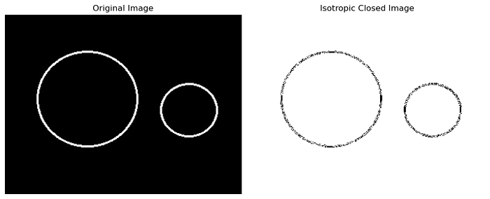 Isotropic closing and opening are binary morphological image processing operations that utilize circular structuring elements and an optimization technique involving the Euclidean distance map to efficiently close gaps, connect regions, and remove small objects in binary images. These operations are optimized for faster execution when using large circular structuring elements.